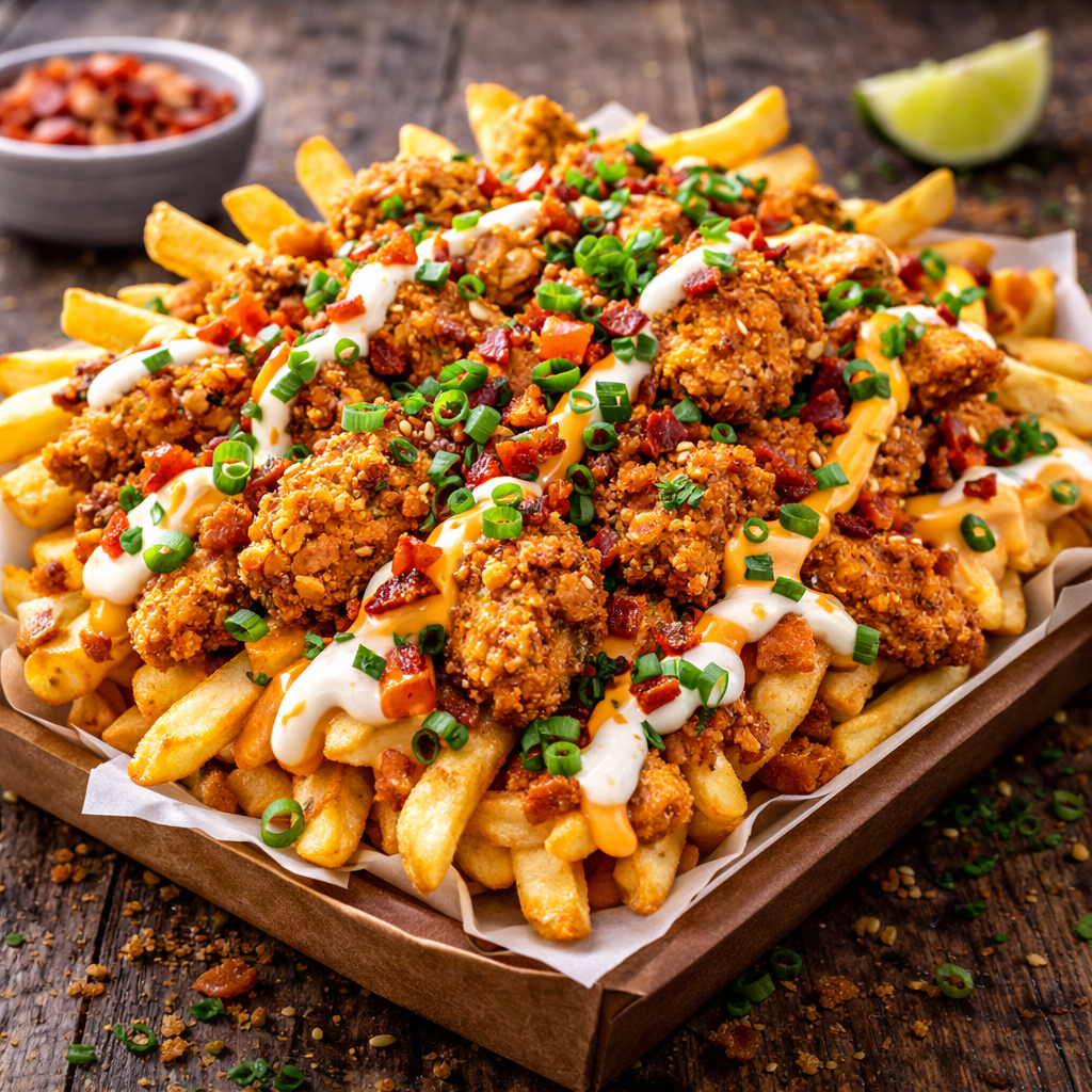 HomeFriesCLUCKER FRIES CLUCKER FRIES£5.00 Skin on chips with slices of chicken strips and melted cheese, special sauce with spring onions CLUCKER FRIES quantity Buy now Category: Fries Product ID: 88 Reviews (0) Reviews There are no reviews yet. Be the first to review “CLUCKER FRIES” Cancel replyYour email address will not be published. Required fields are marked *Name * Email * Save my name, email, and website in this browser for the next time I comment. Your rating * Rate… Perfect Good Average Not that bad Very poor Your review * I agree that my submitted data is being collected and stored. Δ Related products BEEFED UP FRIES £6.00 Buy now SEASONED FRIES £2.00 Buy now SKIN RUSTIC FRIES £2.00 Buy now