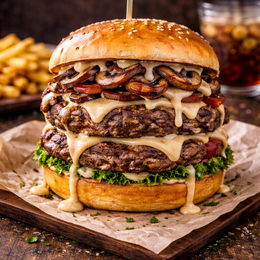 Double smashed beef burger with caramelised onions.
